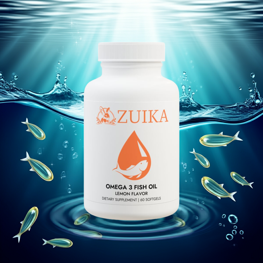 Zuika Fish Oil is a dietary supplement containing omega-3 fatty acids, including EPA and DHA. Packaged in the USA with globally sourced ingredients. Third-party tested, non-GMO, corn-free, and lactose-free.